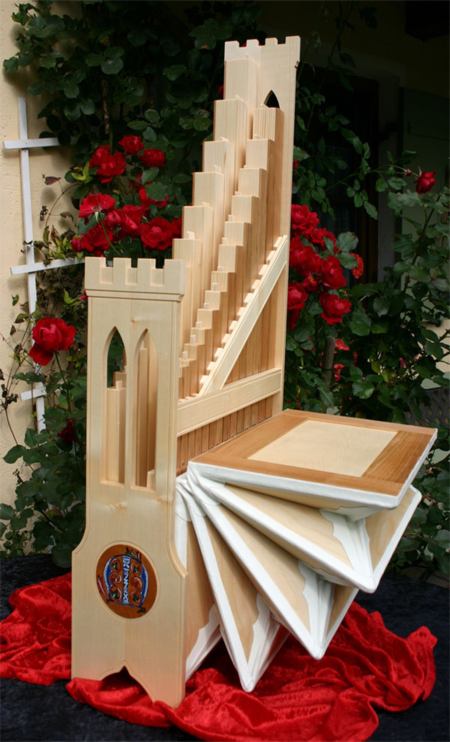 Zusätzlich zur vollwertigen, präzisen und leichtgängigen Orgeltastatur bieten wir auch eine einfache Knopftastatur nach frühmittelalterlichem Vorbild an.